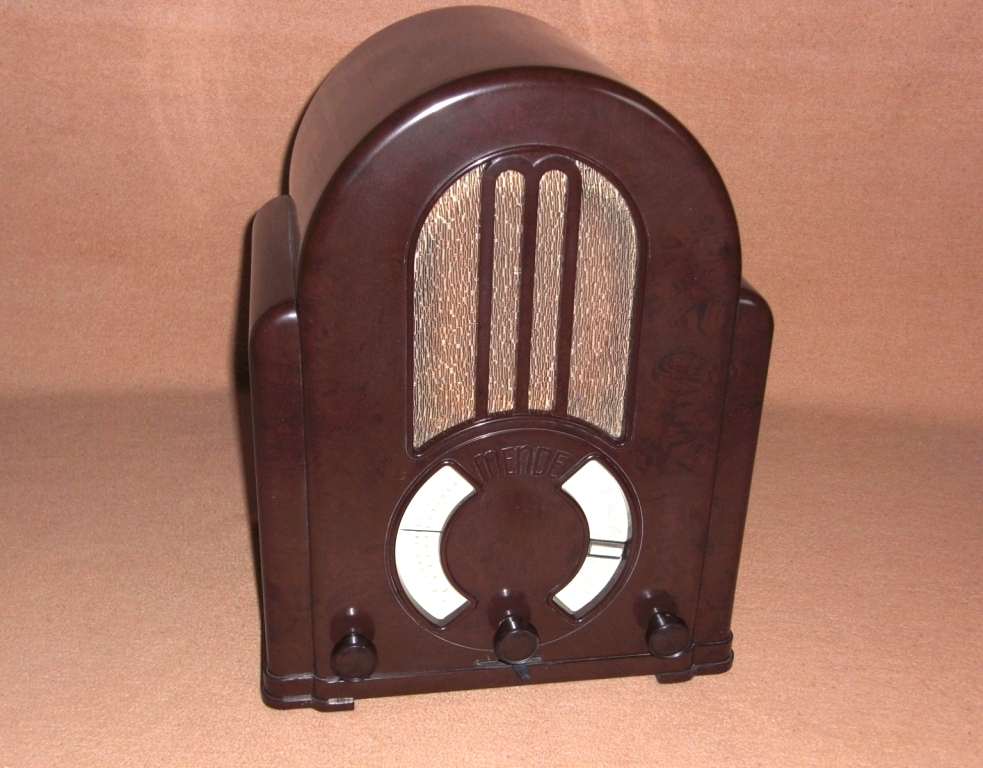Als erstes möchte ich euch den Mende 180G vorstellen. Dieser 1932 im Kathedralstil gebaute geradeaus Zweikreiser, ist die Gleichstromvariante des 180W. Das lautsprecherlose Vaiante zu diesem Gerät heißt 138G. Das Radio empfängt die Wellenbereiche L und M. Es gibt einen auf die Eingangsröhre wirkenden Lautstärkeeinsteller und eine regalbare Rückkopplung. Verwendung finden die Röhren: RENS1818, 2x RENS1820, RENS1823d oder wahlweise REN1822.