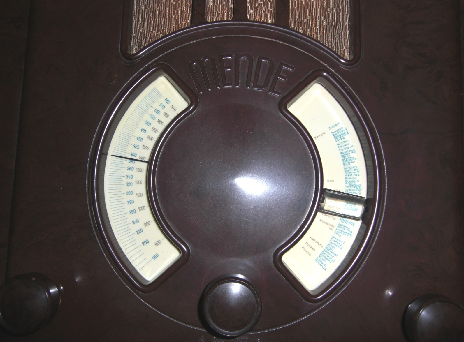 ein weiteres Radio mit Propellerskala, ist der 1933 gebaute Mende Weltklasse WK. Wie die Modellbezeichnung richtig vermuten lässt, hat dieses Gerät im Gegensatz zum Vorgänger 180W (G), nun neben L und M auch eine Kurzwelle. Die Propellerskala ist nun beidseitig (getrennt nach L und M) mit Sendernamen bedruckt, und im Grundkreis um fast 2cm gewachsen. Dadurch kann die Leselupe wegen etwas größerer Schrift entfallen. Vor dem Lautsprecher findet sich nach wie vor, das geschwungene lang gezogene M. Das Gerät wirkt wegen dem kantigeren Gehäuse, nun deutlich schlichter.