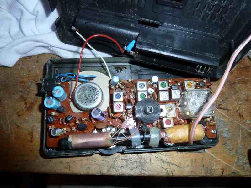 hier mal zur Abwechslung ein einfaches, kleines Transistorradio von etwa 1980. Es empfängt Langwelle, Mittelwelle und UKW, wobei der UKW-Bereich bis 135MHz geht und somit auch den VHF-Flugfunk empfängt. Es gab auch eine Version mit den 'normalen' UKW-Bereich bis 108MHz, da der Flugfunk nicht in allen Ländern empfangen werden darf. Der Empfang auf Lang- und Mittelwelle ist ausgezeichnet und schlägt sehr viele wesentlich grössere Radios, während der UKW-Empfang eher durchschnittlich ist. Eine weitere Schwäche bei UKW ist die, dass durch Annäherung der Hand (oder was auch immer) an den Drehko auf der Rückseite das Gerät störend verstimmt wird, so dass UKW-Betrieb kaum möglich ist, wenn man das Gerät in der Jackentasche betreibt.