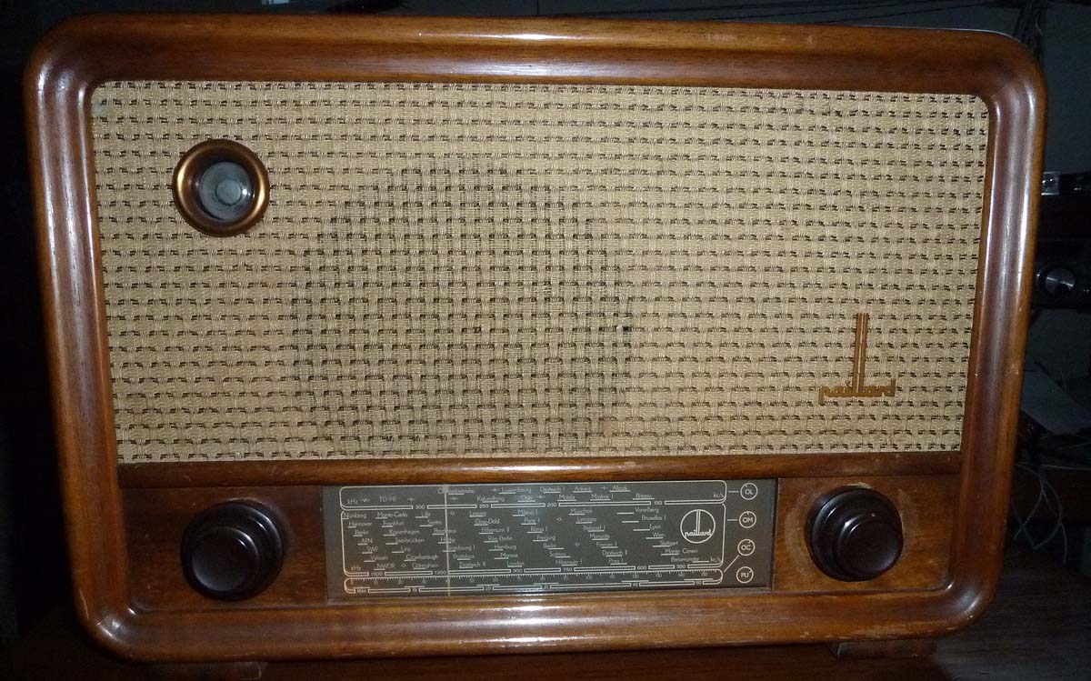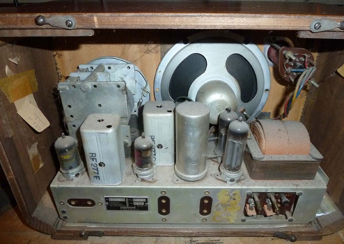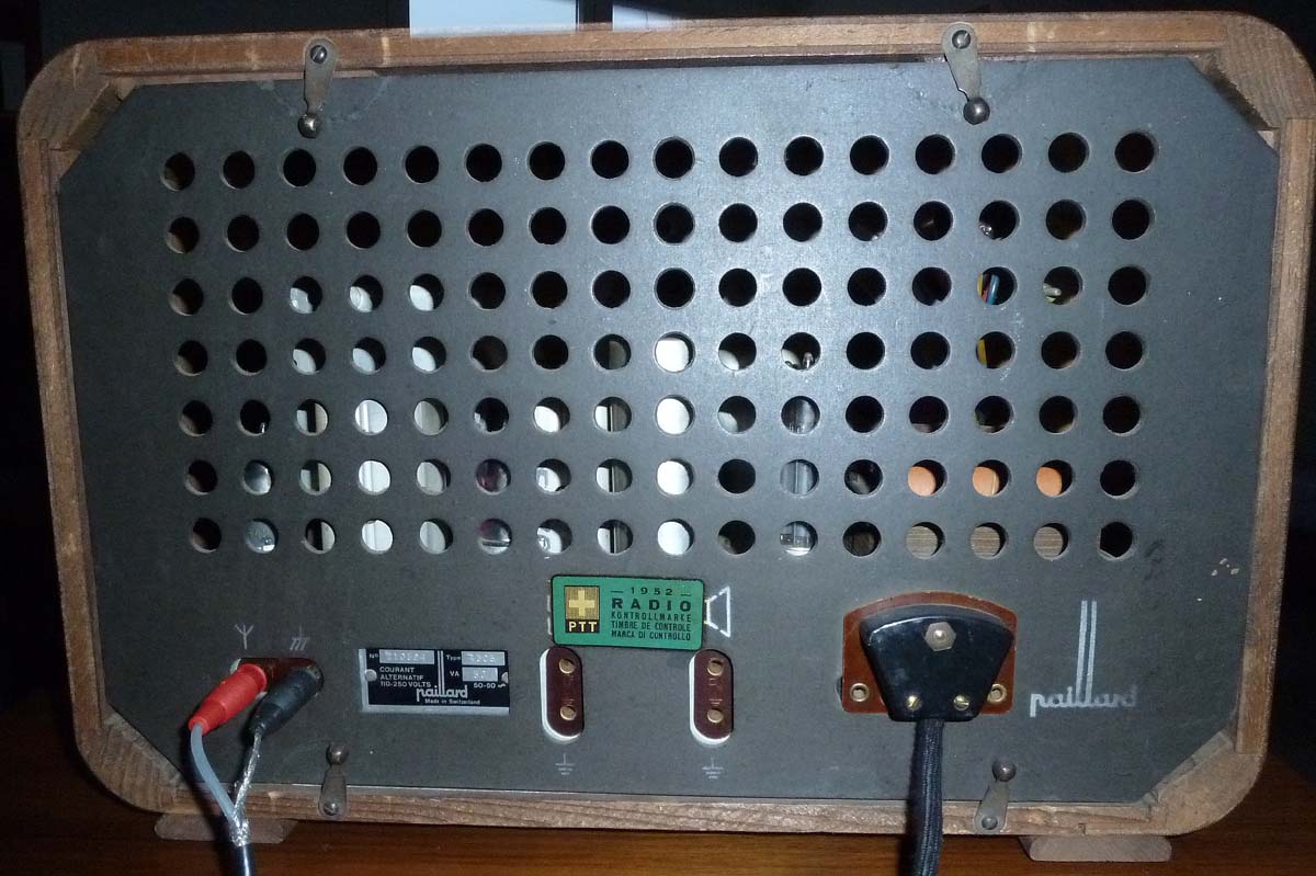 Wenn ich richtig gesehen habe, ist das der erste Paillard in deinem Museum. Für ein *(N)*es Röhrengerät (mit Gleichrichterröhre) ist es enorm klein geraten, für meine kleine Sammlung eine sehr gute Eigenschaft. Trotzdem wird es im Inneren nicht heiss.