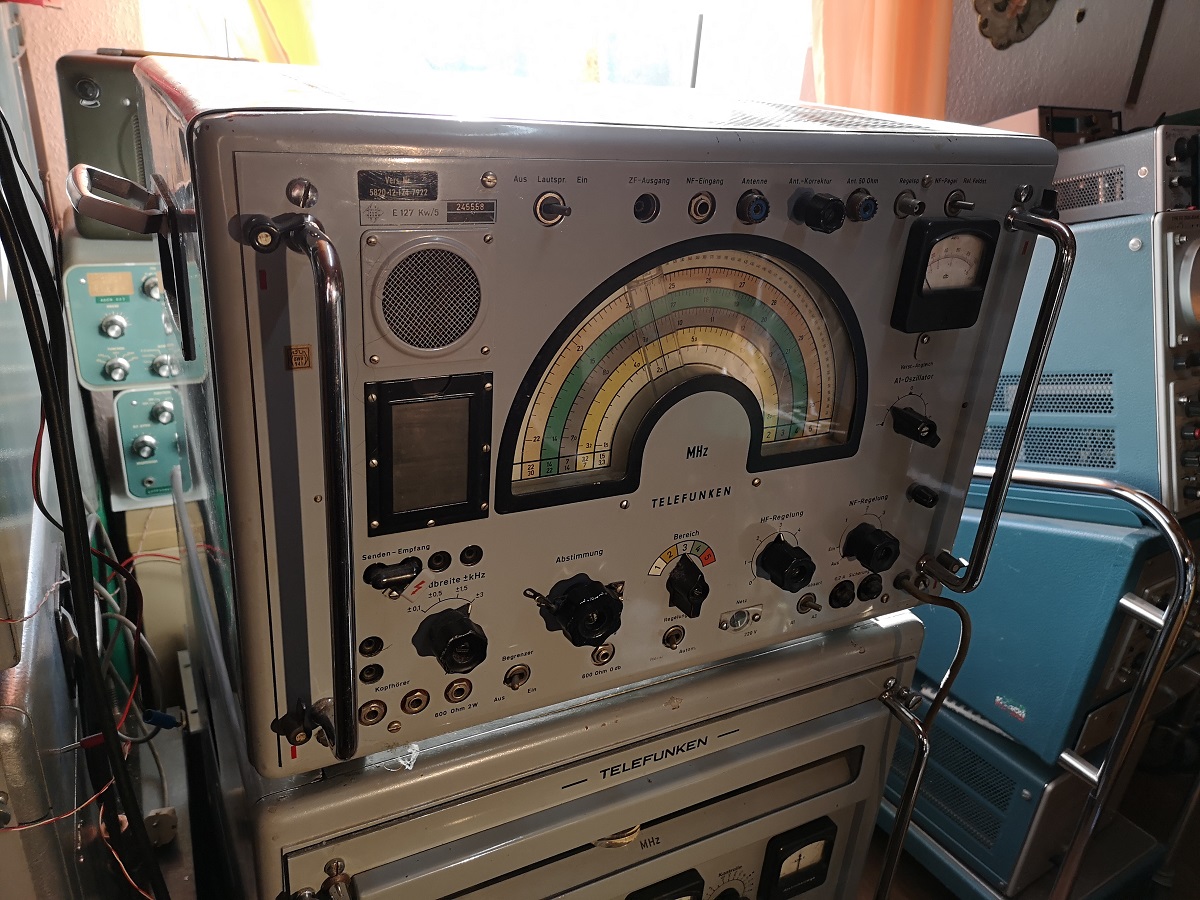 Telefunken E127Kw5 ein kleiner Verwandter von meinem E104Kw4/7, 8 Röhren und deutlich leichter. Er hat eine Regenbogenskala. Wenn das Rot wiederhergestellt ist sieht man erst was für ein Schmuckstück das wird.