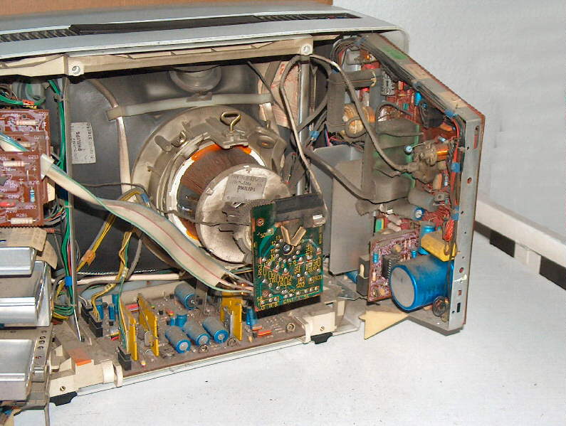 Nochmals vielen Dank für Deinen Hinweis. Wenn man so ein durchdacht aufgebautes Gerät sieht und mit anderen Chassis von Philips vergleicht, z.B. L6.1, L6.2 oder A10, fragt man sich, wo die Servicefreundlichkeit geblieben ist. Wer mal bei einem A10 den Painter- Chip ersetzen mußte, weiß, was ich meine. Bei den modularen Chassis, wie K9 und KT2 hat man nur das Problem, daß von den Modulen nur Blockdarstellungen zu finden sind. Aber notfalls kommt man auch damit zurecht.
