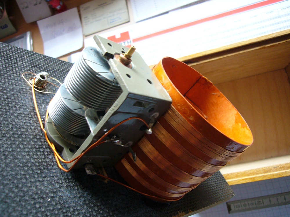 Die Abstimmung erfolgt über ein Variometer (180 Grad drehbar), wobei die Abstimmspule mit dem kleinen Drehschalter auf der linken Seite verändert und daher auch für längere Wellenlängen verwendbar gemacht werden kann.