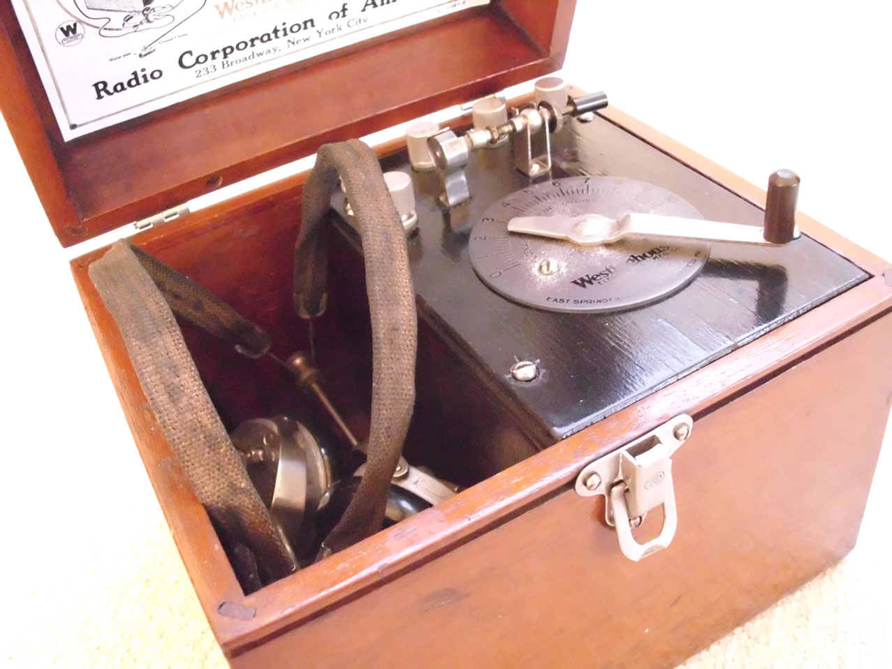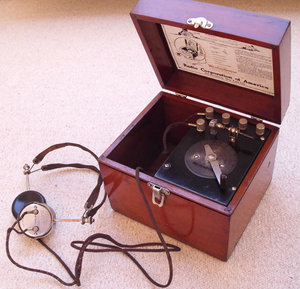 Im gleichen Gehäuse findet man hier die Detektor-Ausführung der ersten Produktionsreihe der Firma Westinghouse in den USA. Dieses Gerät kam im Jahr 1921 heraus, als hierzulande noch gar nicht an regulären Radioempfang zu denken war.
