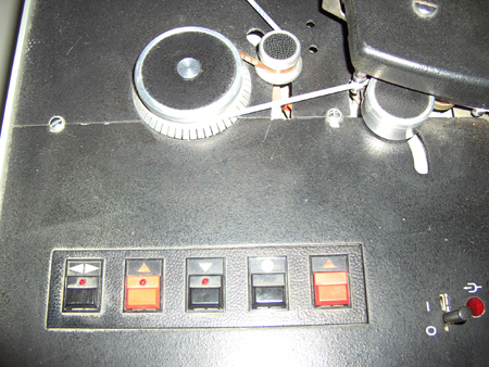 heute möchte ich meine Mechlabor STM-610 kurz vorstellen. Wie ich einer TV-Sendung entnahm, ist der jetzige Besitzer des Haus des Rundfunks Berlin, Nalepastrasse stolz noch eine Bandmaschine im Haus zu haben. Es ist eine STM-610. Die Maschine ist für 2 Bandgeschwindigkeiten ausgelegt: 38,1 und 19,05cm/s. Das 1/4'' Tonband, Schichtseite innen, wird in 2-Spur Stereo-Technik bespielt. Die Bandmaschine erfüllt selbstverständlich die Studionorm. Für 1000m Studioband auf Wickelkern (Bobby)sind die Wickelteller (29cm) mit AEG-Aufnahme vorgesehen. Es können auch Spulen benutzt werden. Leider fehlen mir die Adapter für 3-Zack-Aufnahme. Die Maschine ist mit den Verstärkereinschüben usw. in ein Stahlgestell eingebaut. Sie kann somit in Tischhöhe bedient werden und ist durch Kabelanschluss fernbedienbar. Bild 1 zeigt die Gesamtansicht. Die Bandführung ist erkennbar. Die linke Umlenkrolle besitzt aussen Schlitze, die von innen beleuchtet sind. Hier kann man stroboskopisch die Genauigkeit der Bandtransportgeschwindigkeit erkennen. Die kleine Rolle daran dient zur Bandzugregelung. Links befinden sich die Bedientasten. Die linke Taste dient dem Umspulen. Richtung und Geschwindigkeit werden jedoch mit dem schwarzen Knebelschalter mit Pfeil rechts geregelt (Rangierschalter). Daneben befindet sich das elektronische Bandzählwerk, welches bis auf 1/10 Sekunden genau anzeigt. Der Schalter über dem Rangierschalter ist leider nicht original. Er dient zum Anschwenken des Tonbandes während des Umspulens zum Mithören. Leider fehlt auch die Abdeckhaube der Maschine. Die linke Rolle vor dem Kopfträger drückt das Band bei A/W an die 3 Köpfe. Rechts befindet sich die Andruckrolle. Vorn in der Mitte sind unsymetrische Ein- und Ausgänge für Bananenstecker vorhanden. Ansonsten arbeitet die Maschine mit symetrischen Tonsignalen, wie in der Studiotechnik üblich. Die Anschlüsse (XLR) dazu befinden sich auf der Rückseite. Weitere Fotos sind erst möglich wenn die Maschine an ihrem endgültigen Standort steht.