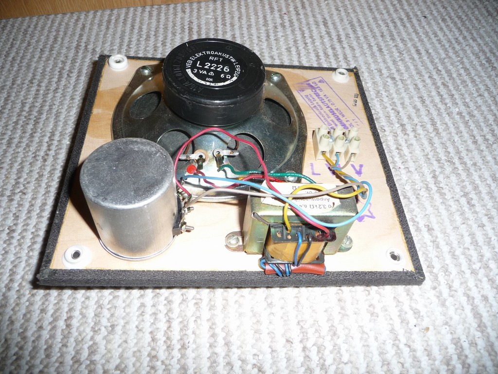 Der Lautstärkeregler ist ein Drahtpoti mit 12K8 und 0,75 Watt. Damit konnte man die Lautstärke der übertragenen Programme individuell einstellen. Der Lautsprecher hat aber auch noch einen Anschluss für Durchsagen, die sich durch den Lautstärkeregler nicht beeinflussen lassen. Damit konnten Durchsagen die nicht überhört werden durften, in voller Lautstärke wiedergegeben werden.