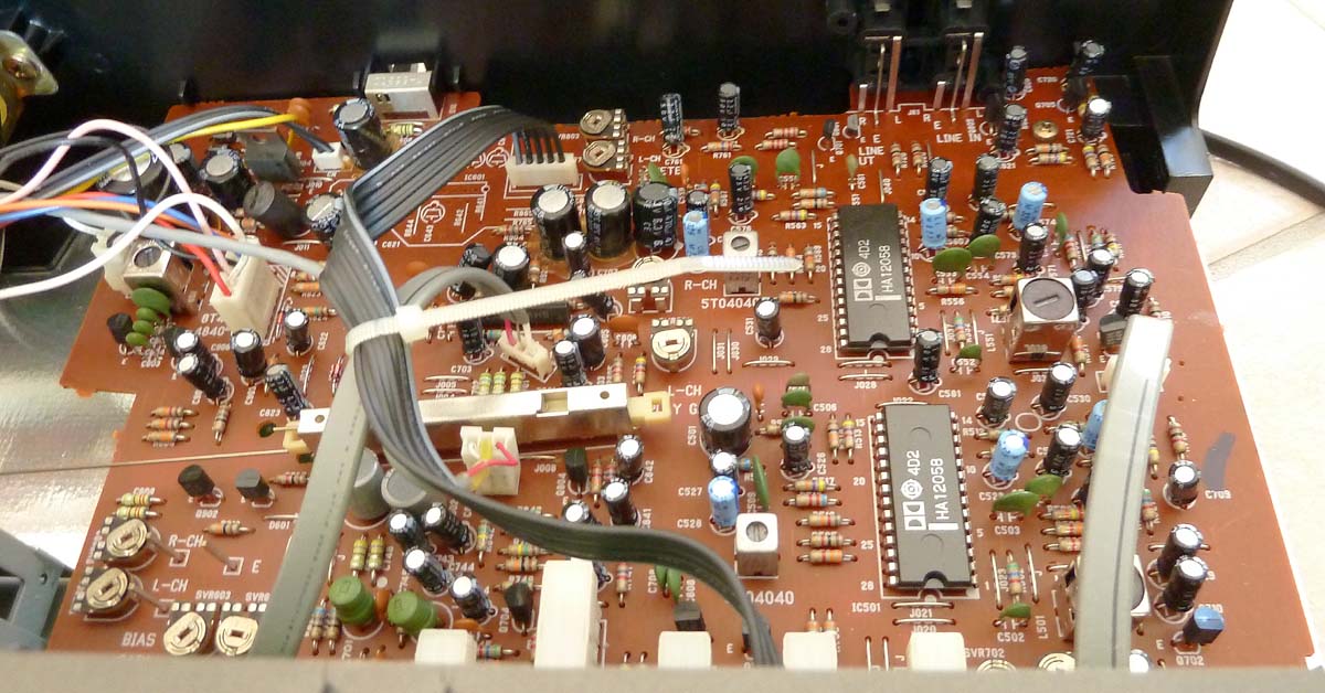 Detail Elektronik, man sieht schön die beiden Dolby-ICs, damals war Dolby B und C noch patentgeschützt:
