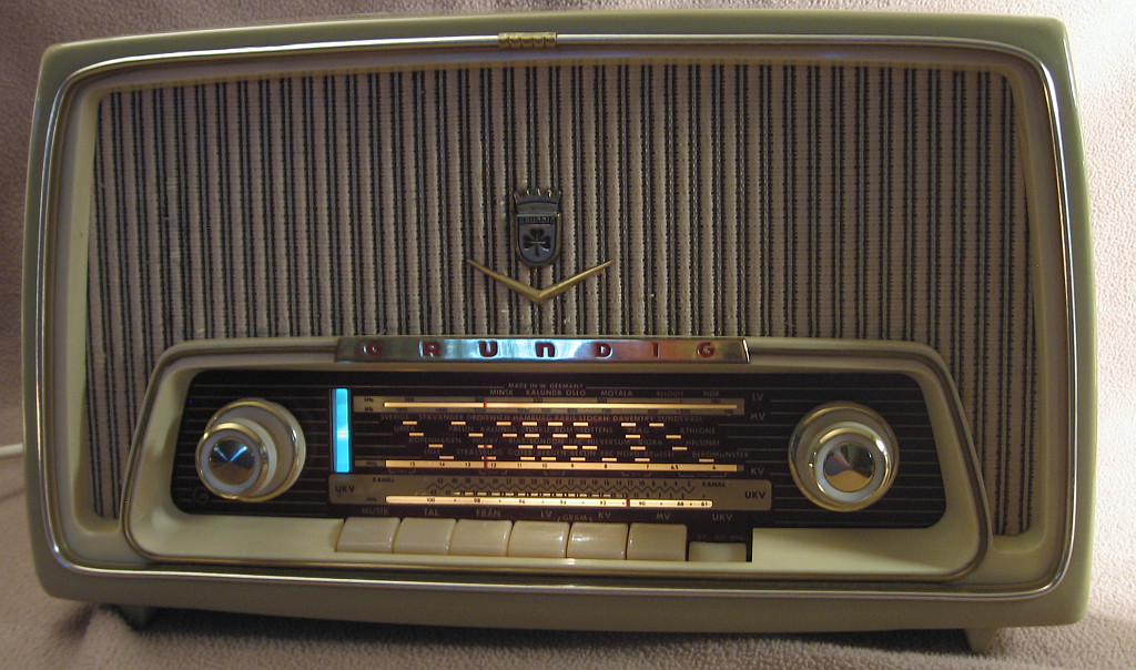 Mich würden mal die damaligen Verkaufsargumente interessieren, um sich von der Philetta abzuheben. Der Grundig hatte ein magisches Auge und die praktische Bandumschaltung mit der Kupplung zwischen UKW und den AM-Bändern. Dann waren noch solche Spielereien wie eine Tonblende für Musik und Sprache per Tastendruck wählbar. Schließlich wurde für einen Netztrafo investiert, den meine gleichaltrige Philetta jedenfalls nicht hat. Auf dem Skalenglas steht "MADE IN W.GERMANY" in großen Lettern. Technik aus Westdeutschland muss wohl auch ein Verkaufsargument gewesen sein. Das ist auch heute noch so in Schweden, wobei natürlich nicht zwischen west- oder ostdeutschen Produkten unterschieden wird.