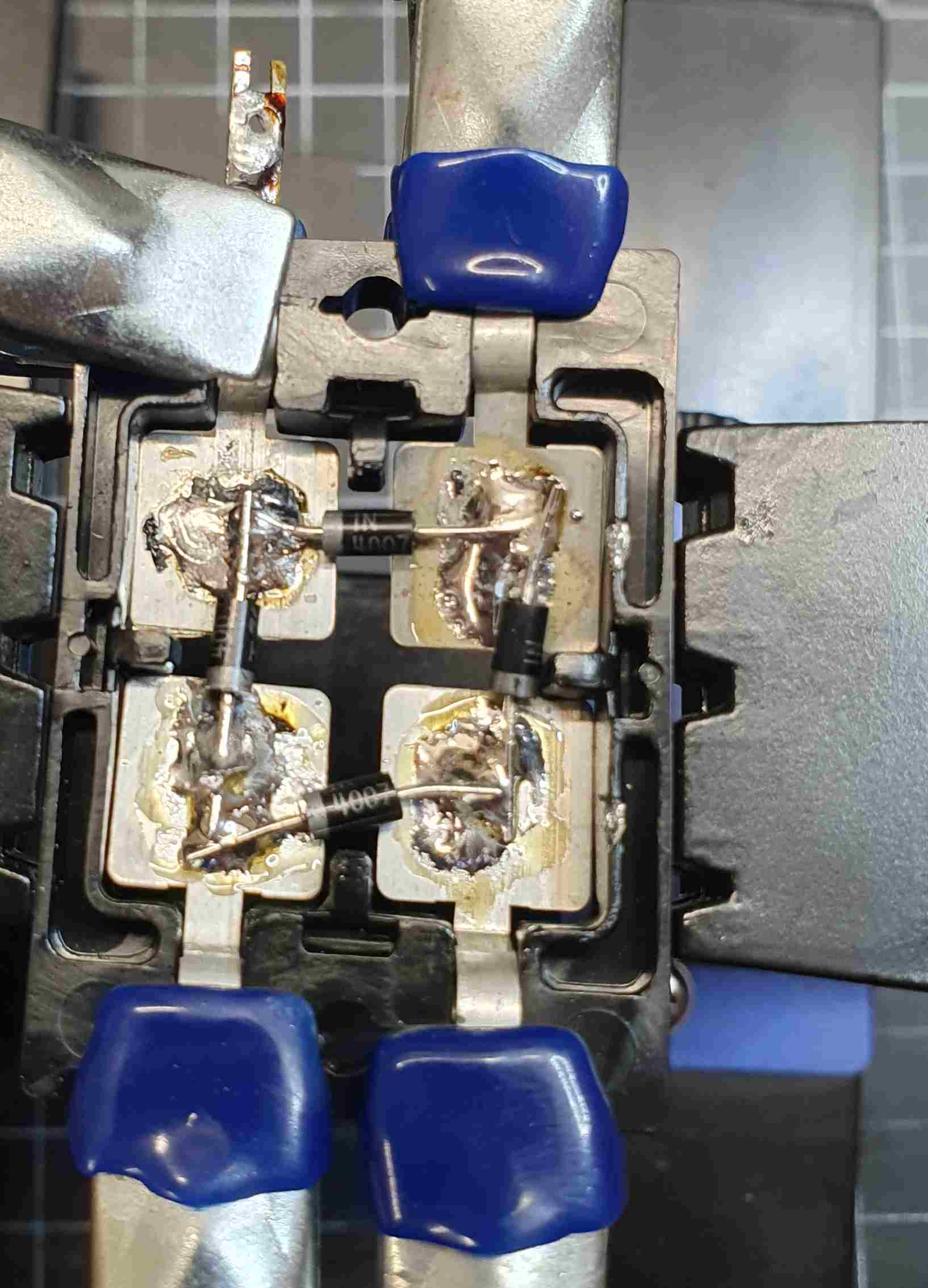 Ja, ich habe den Selengleichrichter neu befüllt. Der wurde schon ziemlich warm, und die Sollspannung am Siebelko lag bei ca. 260V, Soll 290V. Die kann man relativ einfach öffnen und neu mit 4x 1N4007 befüllen.