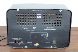 54W Mittel und Lang, UKW vorbereitet, AZ41 als Kleichrichter. Die Rückwand gibt nur "Typ W" an, eingeklebter Schaltplan weist 54 W als Empfänger aus. Es gibt die Ausführung 54 W im Bakelitgehäuse und die Version 54 W/H im Holzgehäuse.