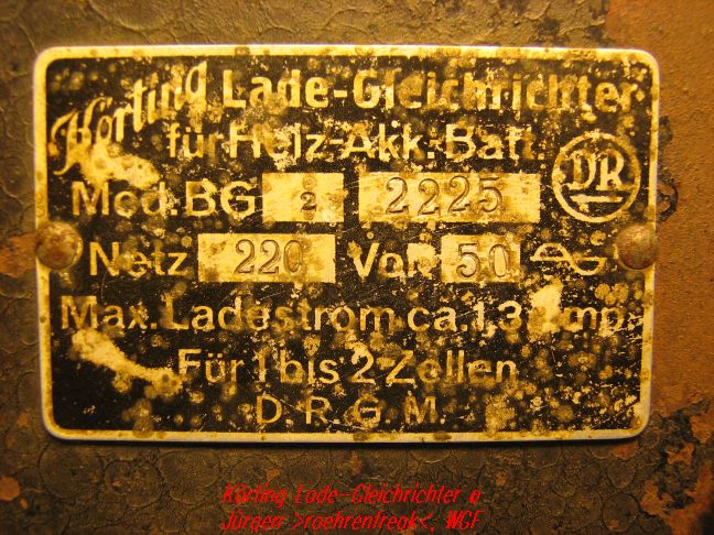 aus einer Sammlungsauflösung konnte ich einen Körting Lade-Gleichrichter BG2 erhaschen. Wer kennt dieses Gerät und kann mir sagen, wann es produziert wurde. Das www hat mir bisher nur recht diffuse Auskünfte gegeben . Vielen Dank für eure Antworten!