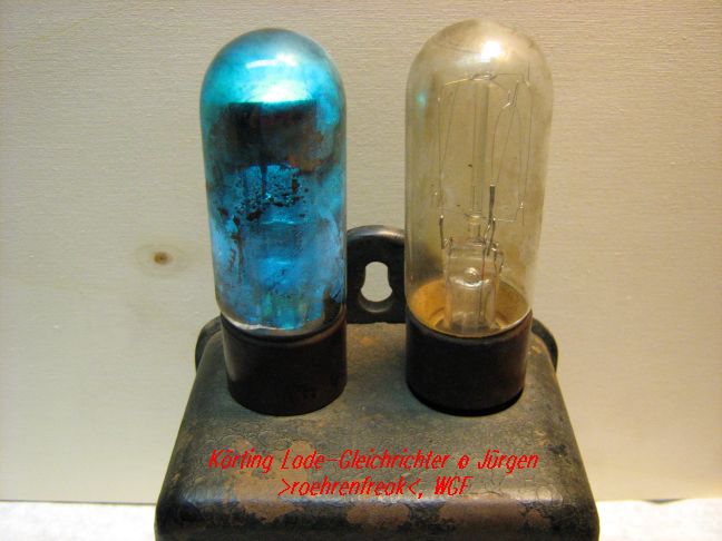 vielen Dank für Deinen schnellen "Info-Service" . Lang habe ich gezögert, dieses "Schätzchen" überhaupt einmal ans Netz anzuschliessen. Aber dann war ich überrascht, dass es doch tatsächlich noch funktioniert. Sag´ mal: Wie gross war denn die Lebensdauer dieser Gleichrichterröhre und liege ich richtig, dass es sich um einen Quecksilber-Dampf-Gleichrichter handelt? Von der Belastbarkeit mit 1,3Ampere bin ich schon beeindruckt und das bläuliche Leuchten im Betrieb sieht bei abgedunkeltem Raum irgendwie "cool" aus .