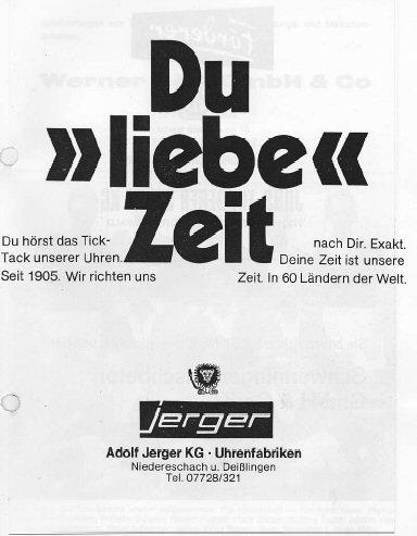 Dies ist Hersteller ? "Adolf Jerger KG . UhrenfabrikenNiedereschach u. Deißlingenfel.077281321" "Seit 1905- Wir richten uns Zeit. ln 60 Ländern der Welt."