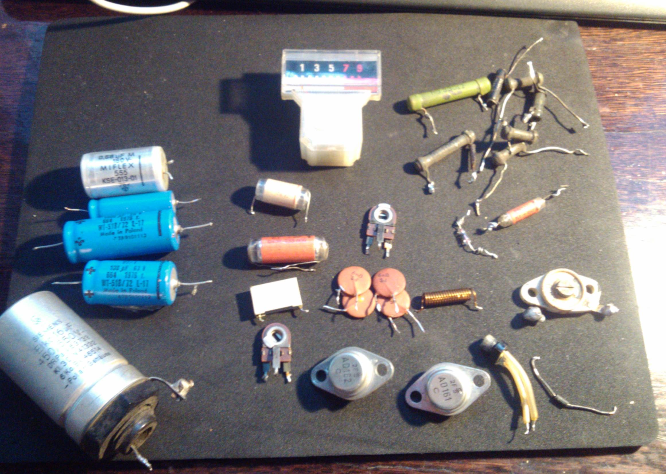 Hallo Ronn, die Kondensatoren sind noch alle i.O. Sie haben folgende Werte: 220uf 16V 16uf 450V 47uf 63V 100uf 63V 8200 pF 400V 1000uF 25V 0,68uF 160V 2200uF 63V