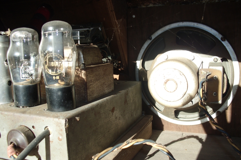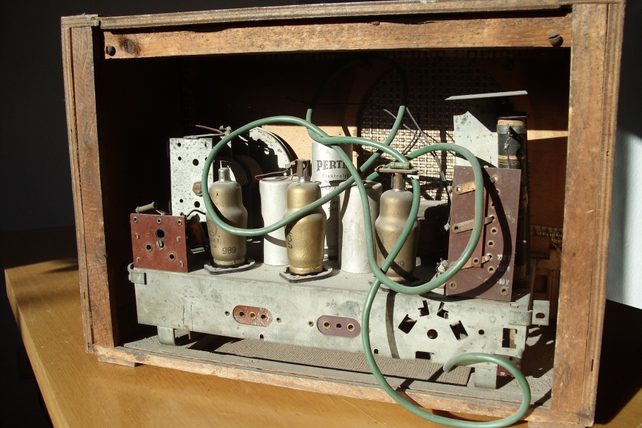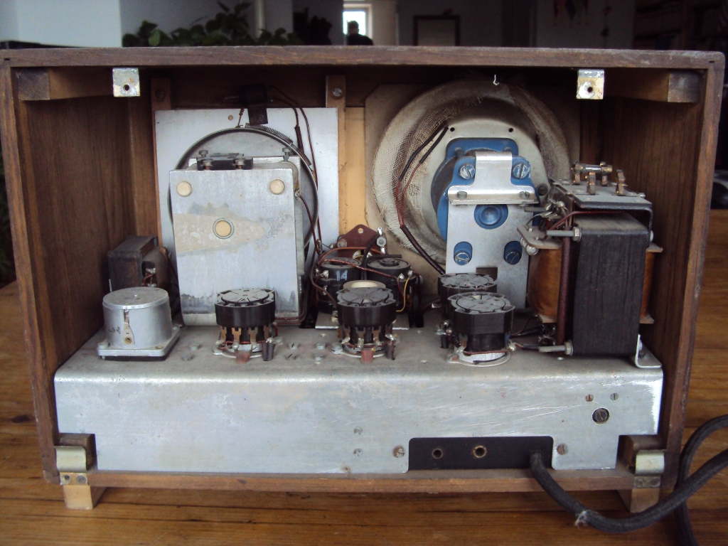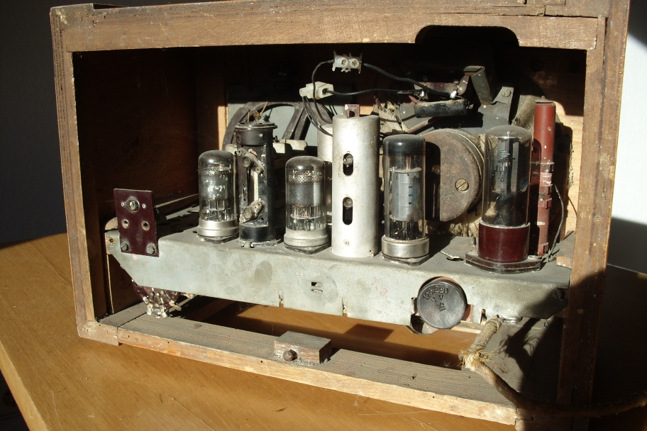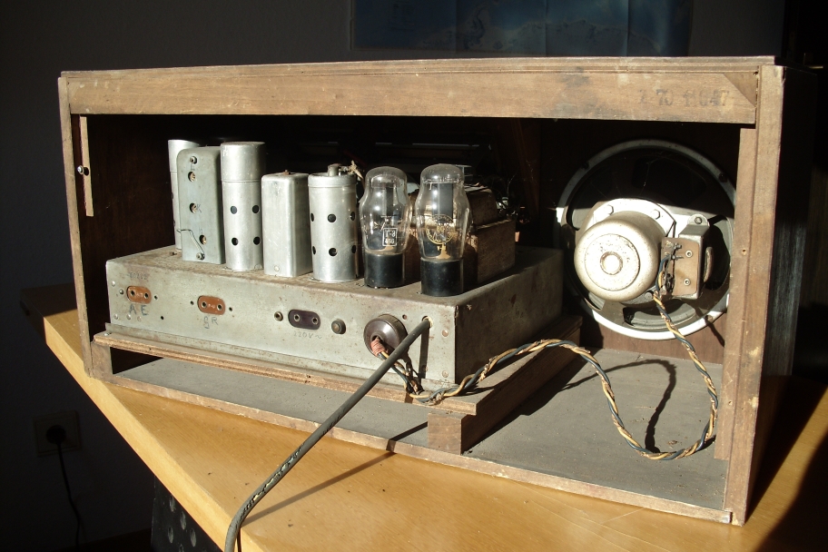 ich brauche Hilfe zur Identifizierung eines Dachbodenfundes! Keine Firmenbezeichnung, Typen-Nr. auf Rückwand unleserlich... Wer kann mir helfen, evt. auch mit der Röhrenbestückung?