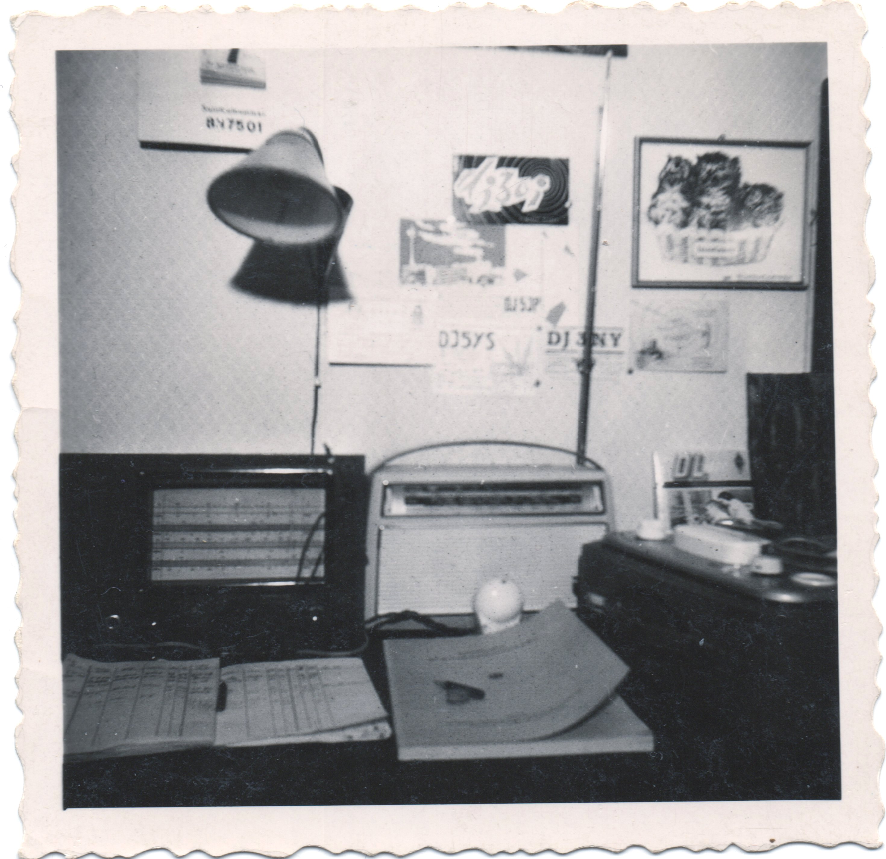 Wer erkennt dieses Gerät???? Ich weiss, es ist schon beinahe eine Frechheit, solch ein Photo zu veröffentlichen... Hab aber kein Besseres, Stolz war man, mit 15 Jahren eine BOX zu haben. Der Papierabzug, den ich gefunden habe, gibt nicht viel her... Auf dem besseren Foto ist meine SWL-Station von 1961 zu erkennen: Links der Seefunkempfänger Type???, in der Mitte Grundig Concert Boy 200 (irgendwann im Lager des DRM gelandet) und rechts ein SAJA MK 4 oder 5 vom Vater, nicht nur um "Schlager der Woche" aufzunehmen.