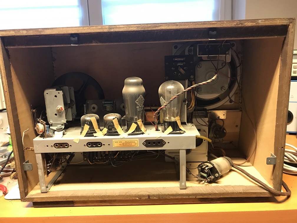 ich habe einen Lumophon WD570 abgestaubt in äußerlich nahezu perfektem Zustand. Der Lack hat ein paar ganz leichte Kratzer, ansonsten spiegelt man sich sogar noch in der Oberfläche.