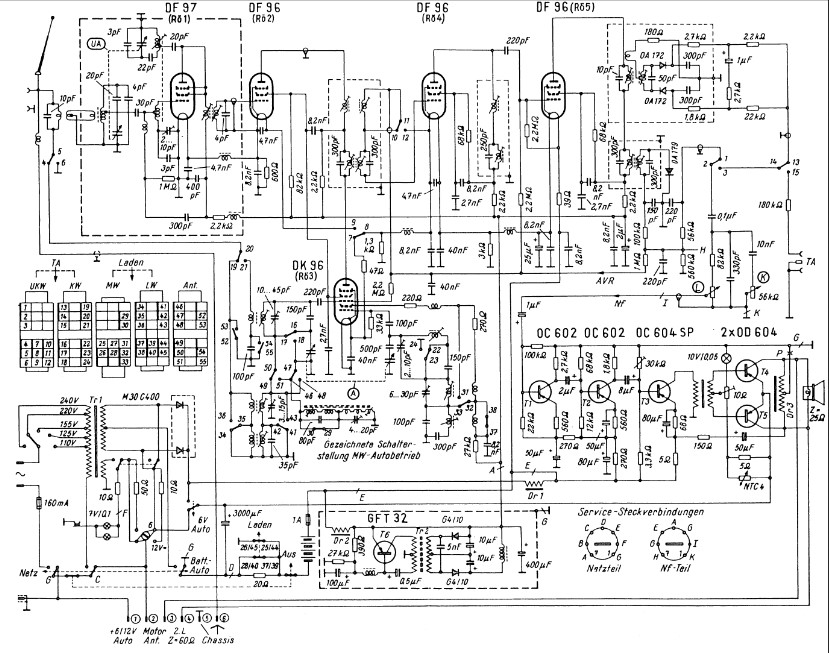 Der NF-Teil hat auffallend viele Transistoren, offenbar wurde da stark gegengekoppelt.