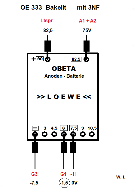 ... es Anodenbatterien gibt, die abweichende Spannungen aufweisen, als es Loewe in seiner Bedienungsanleitung zum OE333 nennt.