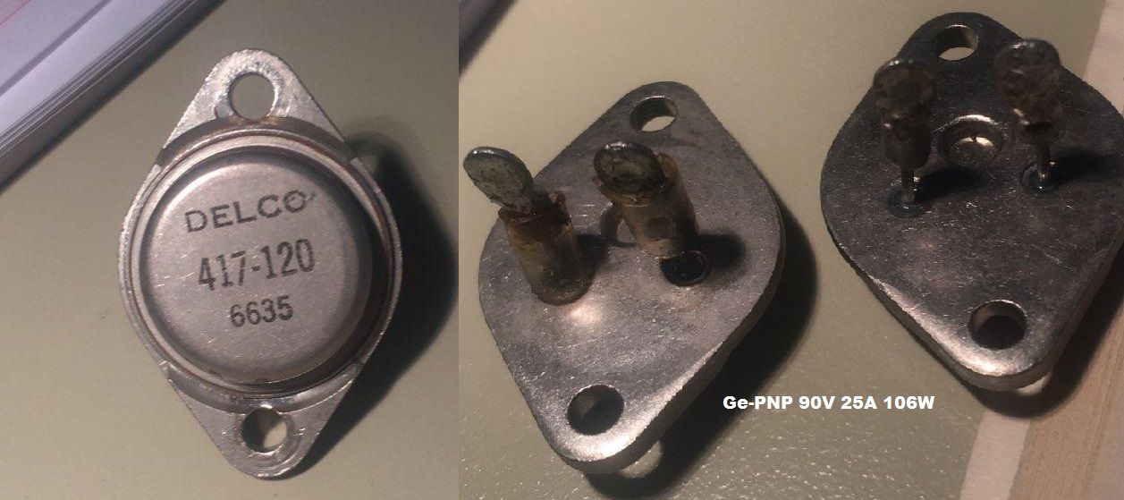 Germanium-Leistungstransistoren scheinen bei gewissen Herstellern noch lange beliebt gewesen zu sein. Bei meinem KW-Transceiver 'CQ110' von NEC (Jahrgang 1975) wurden für den Gleichspannungswandler 30A-Ge-Transistoren verbaut, die immerhin 100V aushalten. Glücklicherweise funktionieren sie noch, Ersatz dürfte schwierig sein. Auch in meinem Körting-Farbfernseher von 1970 wurde ein Ge-Leistungstransistor für die 24V-Regelung eingesetzt, obwohl diverse Si-Transistoren verbaut wurden, die von den Daten her auch gegangen wären.
