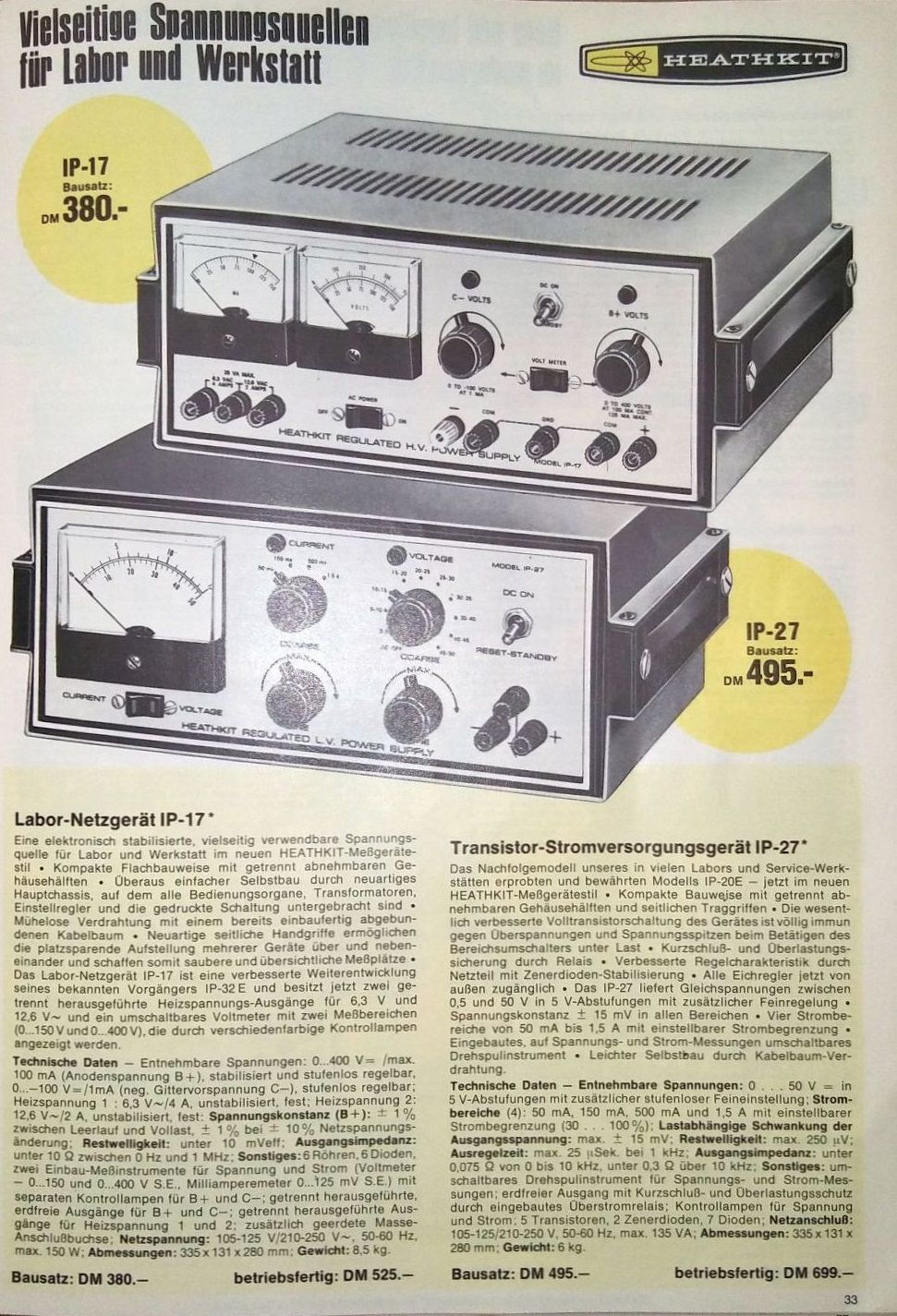 Mit 495 DM für den Bausatz war das Netzteil sogar um fast 100 DM teurer als das Hochvoltnetzteil. Es sollen erhebliche Stückzahlen an Firmen, Schulen und Universitäten (selbst bei uns damals in Westdeutschland) verkauft worden sein. Die Daten aus dem Katalog von 1969 sehen auch ganz gut aus: