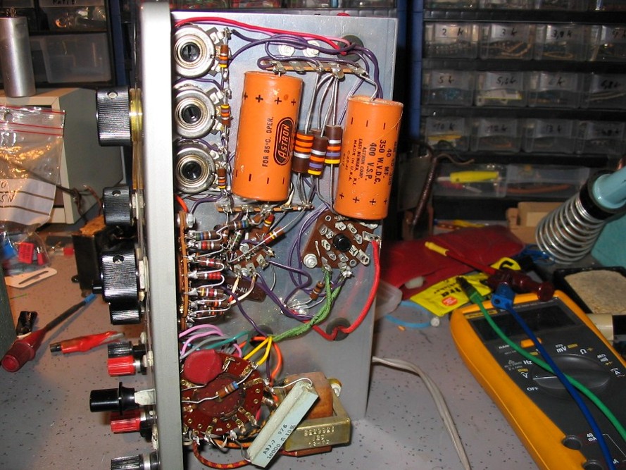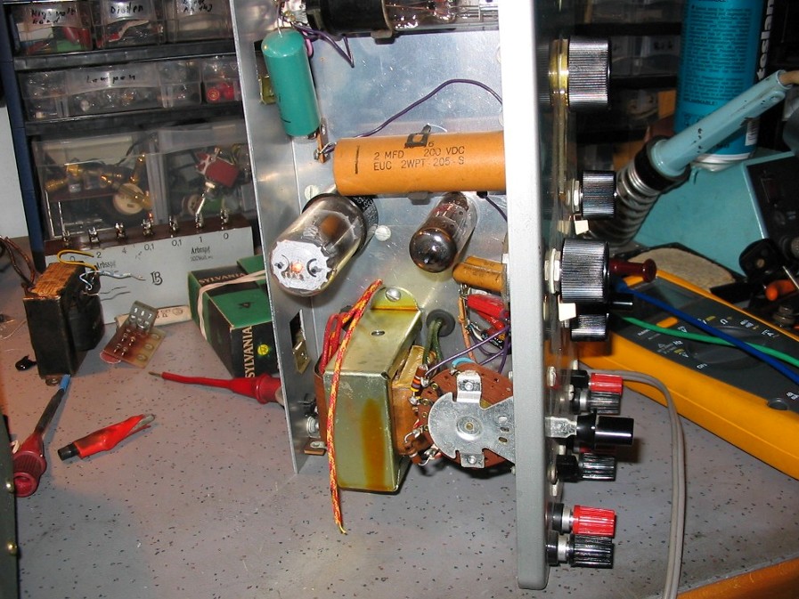 Hallo zusammen, ich habe von einem Amerika Besuch u.a. einen def. Heathkit Kondensator Prüfer mitgebracht, den ich derzeit versuche zu verstehen / zu reparieren. Das Gerät bietet die Möglichkeit Kondensatoren ( auch Elko ) auf Isolationsfehler, Kurzschlüsse und Unterbrechung zu testen. Das Ganze mit abgestuften Prüfspannungen bis 600 V DC Darüber hinaus beinaltet es eine Messbrücke zu Bestimmen von R C u. L Vordergründig, das war relativ einfach, war zunächst nur die Anzeige Röhre 6E5 zu erneuern. Der Checker funktioniert wieder. Mit der Messbrücke komme ich noch nicht ganz klar. Mal sehen was daraus wird.