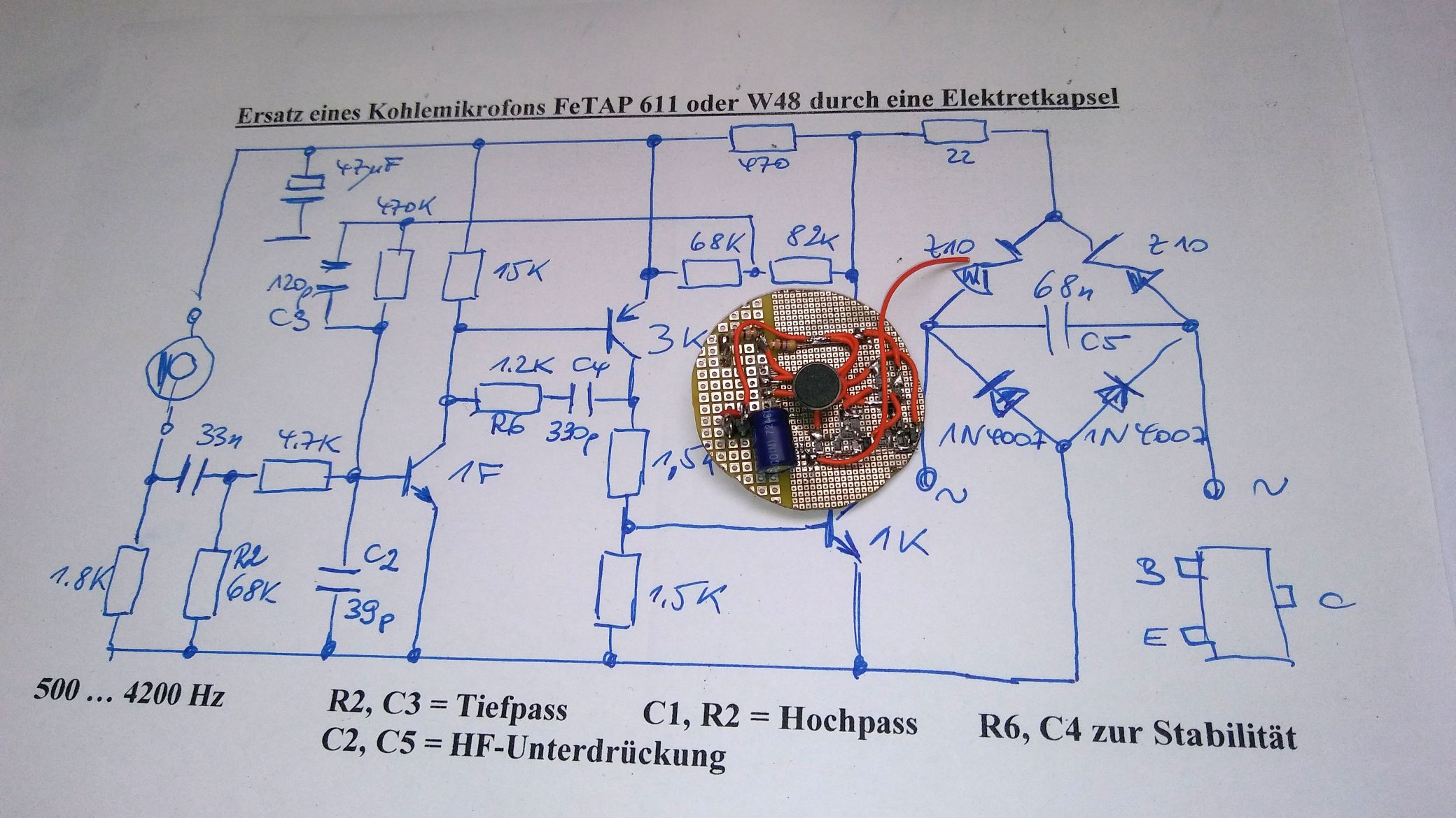 Re: Elektret- statt Kohlemikrofon für alte Telefone