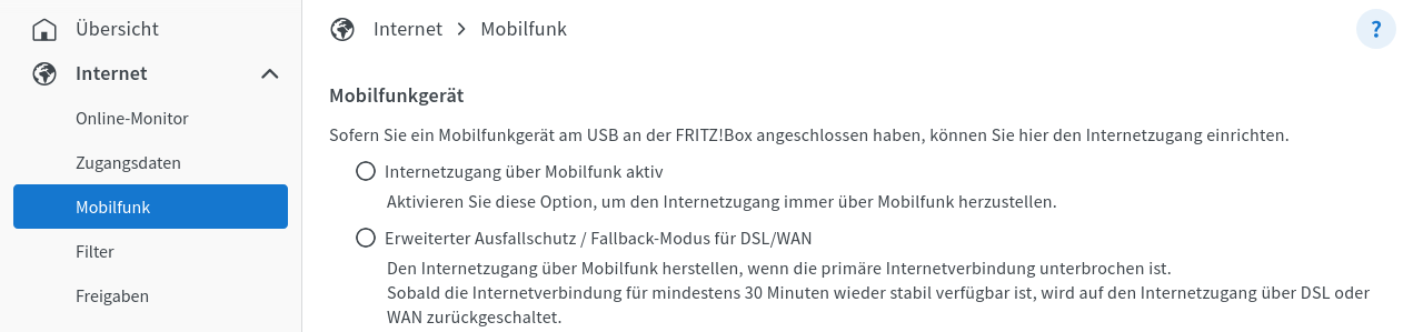 das funktioniert über diesen Menüpunkt bei mir mit USB-Tethering eines Smartphones wie ich geschrieben habe, Dort geht es auch mit dem vorher beschriebenen LTE USB Stick. Die Funktion soll aber nicht nur die 7530 AX besitzen, sondern auch von anderen FB unterstützt werden.