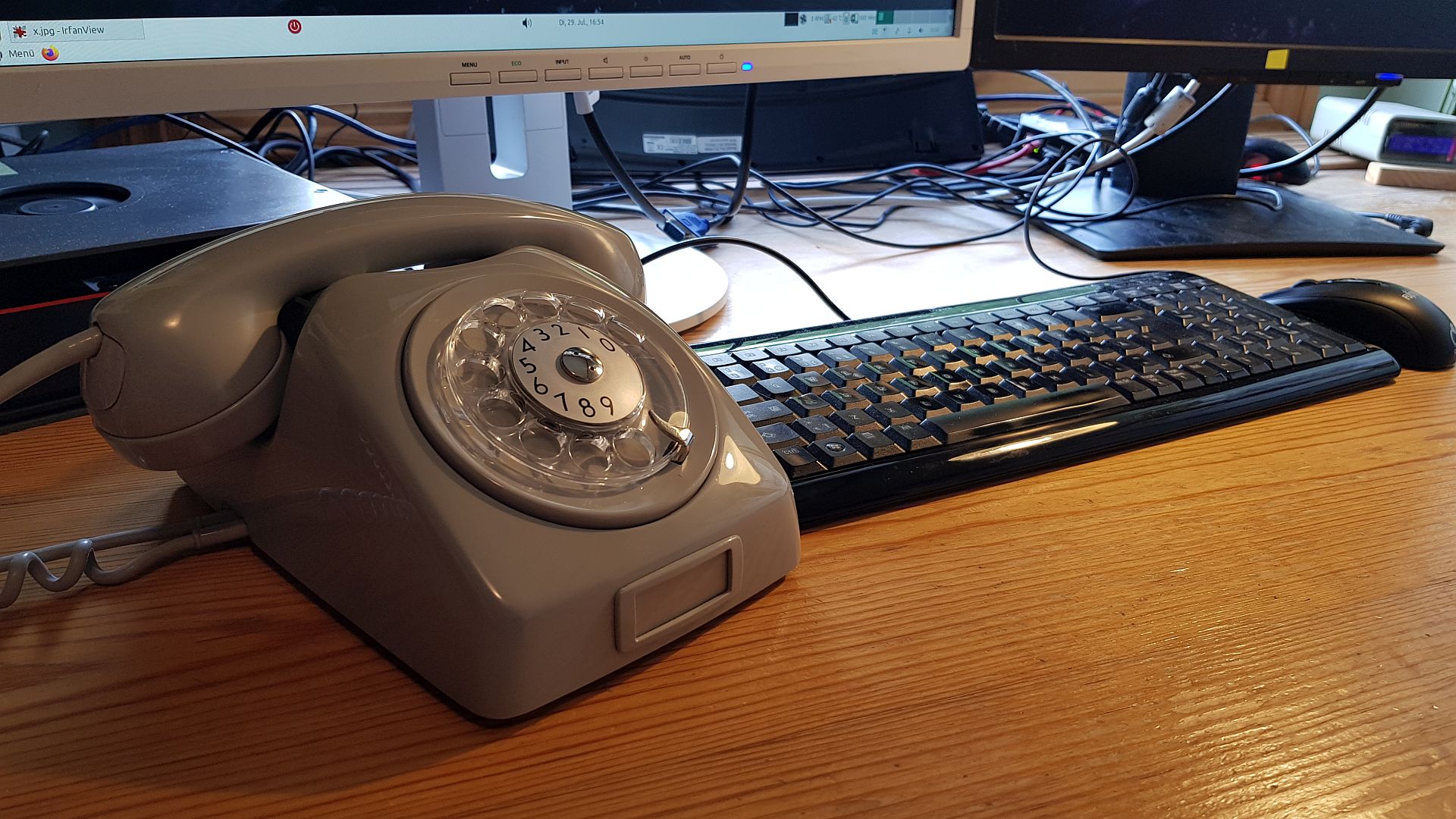 Das alte Wählscheibentelefon funktioniert in beiden Richtungen – drahtlos über die mobile Datenverbindung.