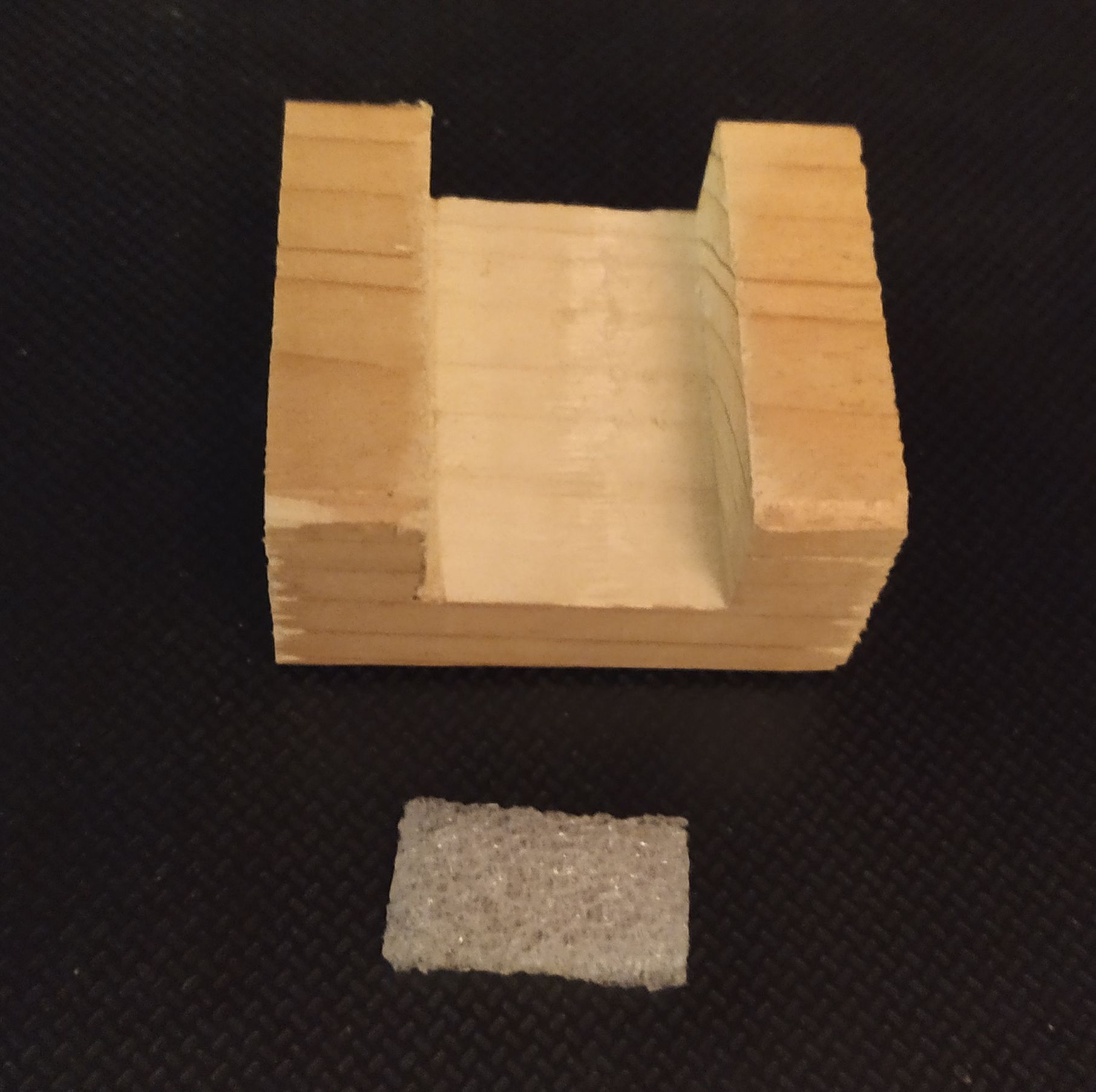 Ich habe mir mal eine Batteriehalterung aus Holz gebaut. Ein kleines Stück Schaumstoff sorgt für den nötigen Andruck. Leider funktionierte das Mikrofon immer noch nicht, also habe ich mal ein Netzteil verwendet und siehe da, es funktioniert. Das Problem ist, dass die Kontaktlasche des -Pols die Batterie soweit nach hinten drückt, das es am +Pol keinen Kontakt gibt. Werde mir mal eine neue Halterung bauen.