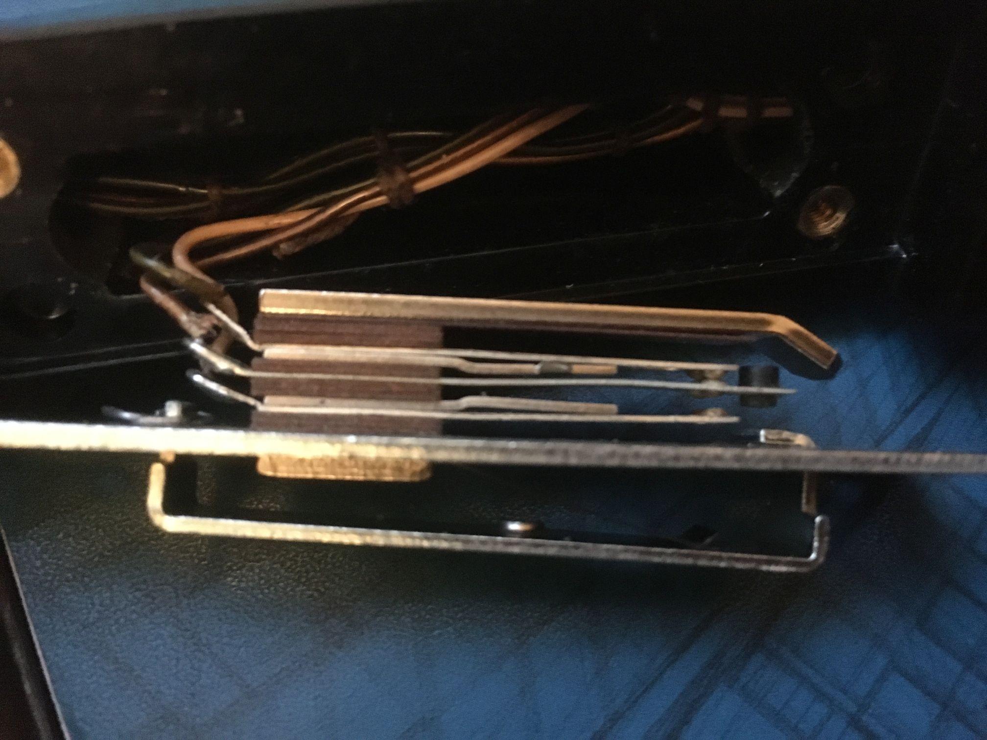 Dagegen bleibt es bei dem Problem, dass der Pulswahl-DTMF-Konverter, der an allen meinen anderen Telefonen wunderbar spielt, mit dem FF54 grundsätzlich eine Ziffer n+1 wählt. Ich habe den Vorsatz geöffnet: Es verbirgt sich ein Nummernschalter der letzten Baureihe (Sommer 1986), an dem es nichts zu justieren gibt: