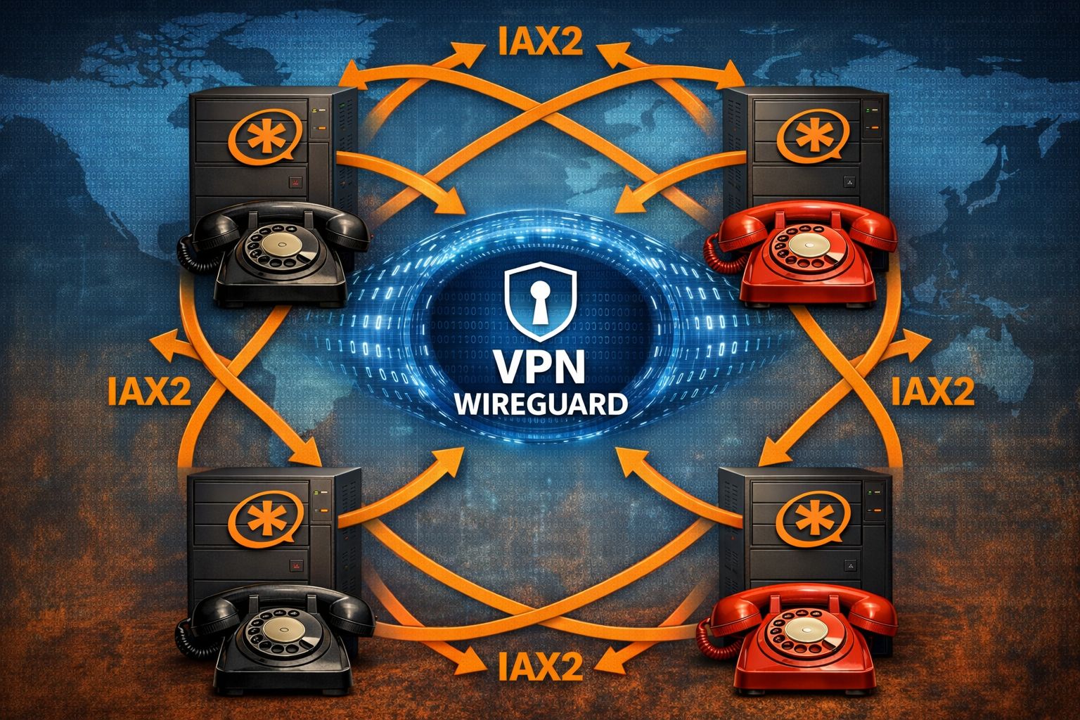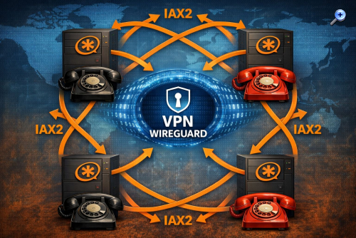 Das Beispiel: Zwei Asterisk-Server sind bereits erfolgreich über eine IAX2-Verbindung miteinander verbunden. Diese IAX2-Verbindung soll nun in beiden Richtungen durch einen VPN-Tunnel geschickt werden. Dazu kommt die VPN-Software Wireguard zum Einsatz. Beide Asterisk-Server laufen auf Linux Debian (z.B. Ubuntu oder Raspian). Das Vorgehen und Einrichten wird an einem Beispiel zwischen den beiden fiktiven Asterisk-Servern Michael und Volker erklärt, da man sonst alles vermischt. Zum Schluss erklärt der Artikel, wie man mehrere Asterik-Server mit IAX2 und Wireguard abhörsicher vernetzen kann.