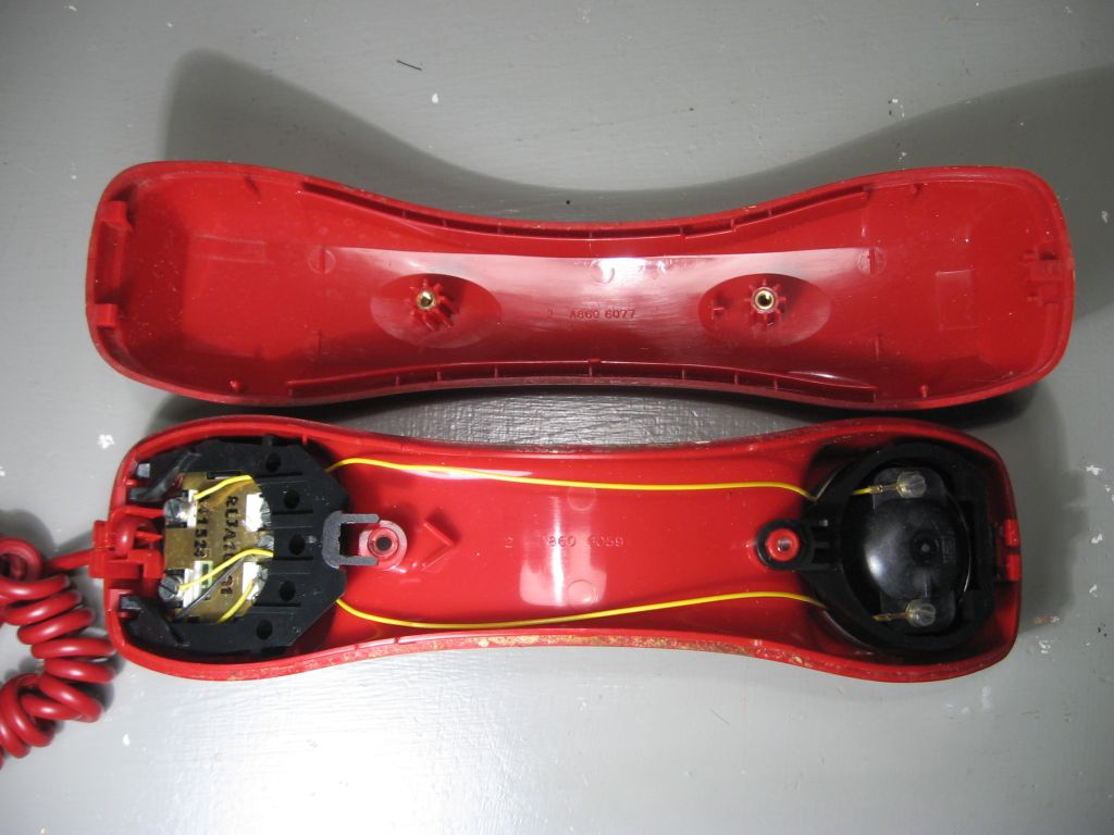 Leider liegt mir das Schaltbild nicht vor. Der Telefonhörer ist nur mit zwei Adern mit dem restlichen Telefon verbunden. Die Mikrofonkapsel enthält wohl die gesamte Gabelschaltung oder ihre elektronische Nachbildung.