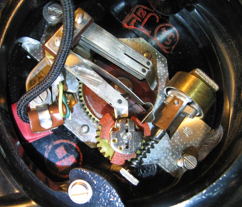 Zum anderen, in meinem Telefon war auch wie im Bild oben zu sehen, so ein rotes zusammengerolltes Stückchen Papier unter dem Nummernschalter geklemmt. Ich frage mich, welchen Sinn dieses hat? Bei mir klemmte es etwas weiter Richtung Schraube.
