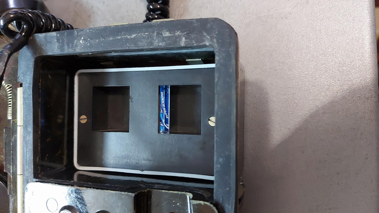 Heute hatte ich mal etwas Zeit und da dachte ich, das ich mal den Feldfernsprecher am öffentlichen Telefonmnetz teste. Ich weiß nicht, ob die Batterien bei Amtsbetrieb auch rein müssen, ich habe es einfach gemacht: