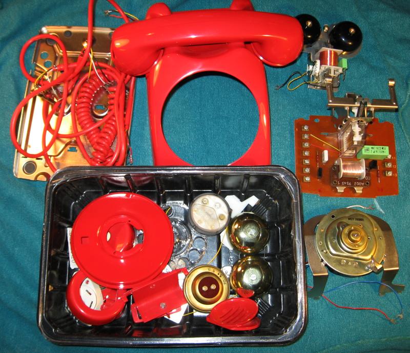 Da dies mein viertes Telefon des gleichen Modells ist, ist die bis jetzt gesammelte Erfahrung eine große Erleichterung, mit der eine Zeitersparnis einhergeht. Den Zusammenbau der Einzelteile kenne ich bereits im Schlaf. Nur für die Kabelverbindungen benötige ich noch mein Merkblatt. Und ich traue es mir nicht zu den Nummernschalter zu zerlegen. Ich belasse es beim Schmieren und dem Reinigen der Kontakte.