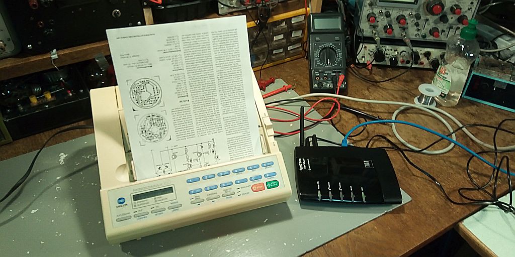 Dann hatte ich noch ein uraltes 56 k Modem aus der Steinzeit des Internets gefunden. In Verbindung mit einem Fax als Softphone ließen sich damit auch Faxe über die analoge Telefonleitung verschicken. Macht heute natürlich wahrscheinlich niemand mehr: