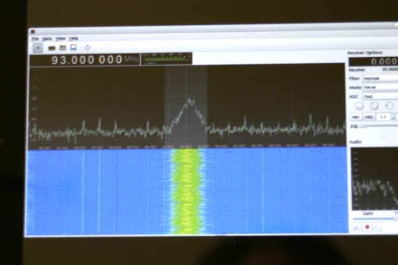 Mit dem zweiten Knopf im Hauptmenü statet die Software den Empfänger 2. Der Empfangsbereich geht jetzt von 25 - 1700 MHz. Hier ein UKW-Sender.