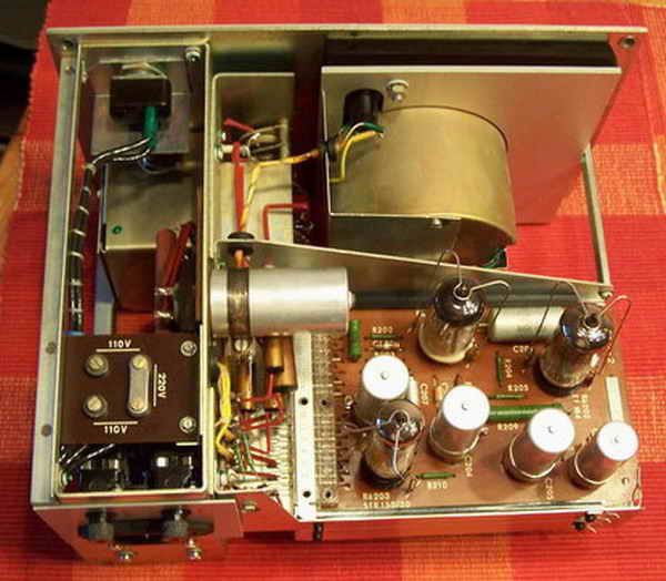 Der Schaltplan oder besser die Nummerierung stimmen nicht mit den echten Gerät überein. Den richtigen hab ich gefunden, mit C 29 im Gerät bezeichnet. Die Spannung ist hier um 30 - 40 V zu hoch. Auch an der Anode der Stabiröhre sind fast 120 V. Es sieht so aus, als wenn der Verbrauch hinter dem Netzteil zu gering ist so das die Regelung nicht mehr richtig arbeitet. An der Röhere V1, bei dem Katodenfolger im Eingang sind die Spannungen um 20 V zu niedrig. Die Sache ist schon etwas verzwickt, die etwas eigenwillige Heizspannungsversorgung der Röhren hinter dem Heizspannungs-GL muss ich auch noch überprüfen.