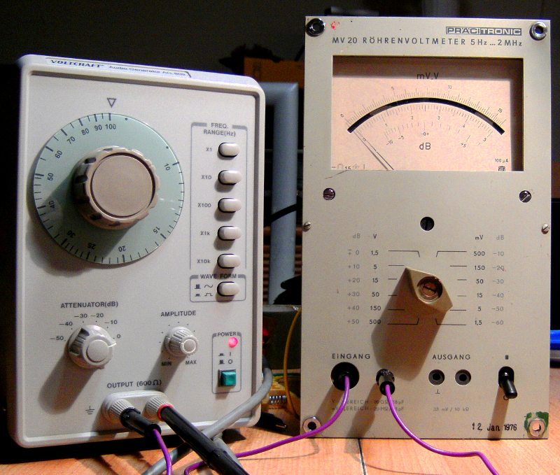 Wieder ein NF Voltmeter. Diesmal von Präcitronic DDR. Bis jetzt kleine Sache, die Zuleitung zum Messwerk hatte sich im inneren des Messwerkgehäuses gelöst. Nach dem Anlöten der Leitung wieder Funktion.Auf dem Foto ist es ausgeschaltet, es funktioniert aber. Leider hab ich einen Messwerkunfall gehabt, mein Grundig RV hat einen Sturz aus 40 cm Höhe auf einen nicht zu harten Untergrund mit einen Riss des Spannbandes nicht überlebt. Jetzt die Suche nach einem passenden 100 µA Drehspulmesswerk.Wobei sich die Sache mit Originalität dann erledigt hat. Beim Präcitronic hehlt natürlich alles Zubehör. Schaun wir mal....