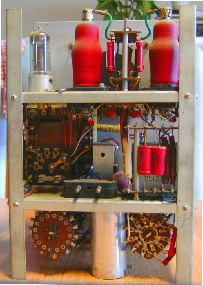Das Gerät davor mit den Wehrmachtröhren dürfte ein Spezialgerät sein ob der kargen Ausstattung. Es gibt keinen MB-Schalter und auch die Skala weist eher eher auf lediglich einen Messbereich hin.