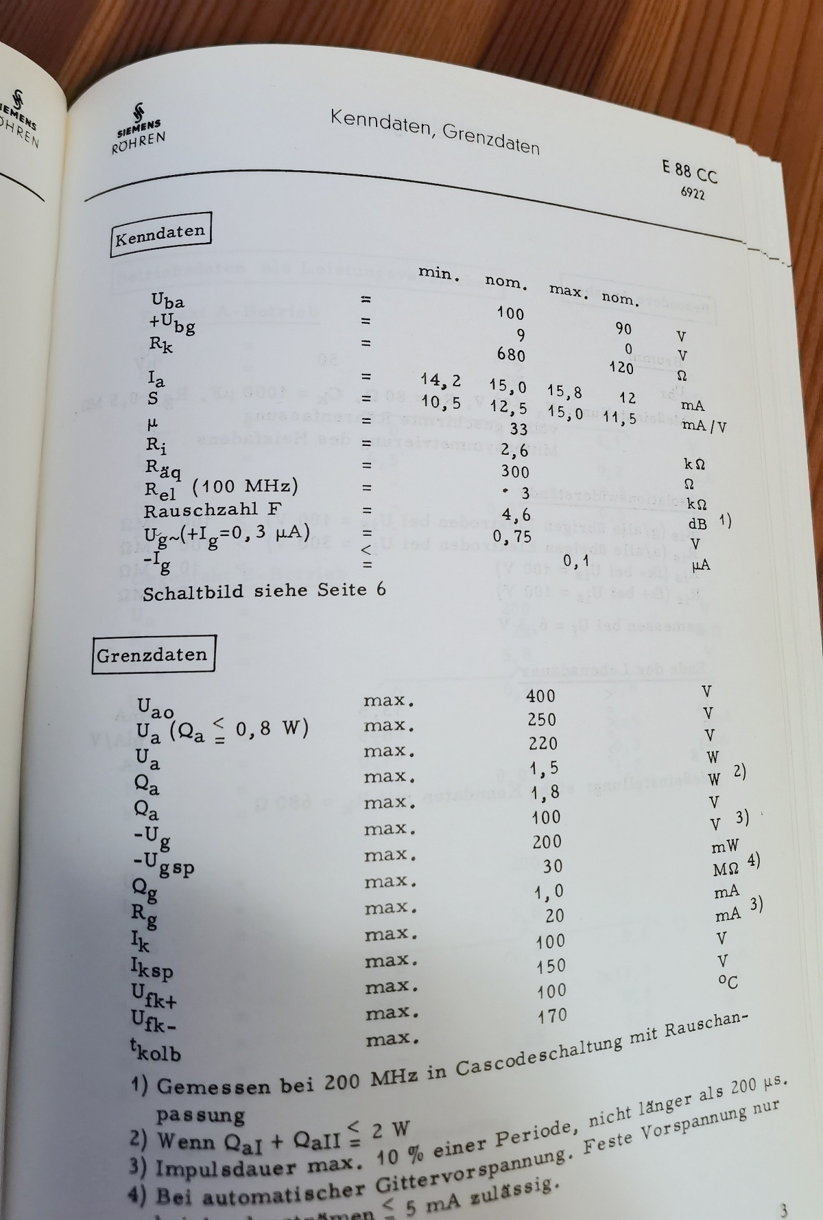 Hier mal das von Siemens aus 1964. Beispiel E88CC: Da gibt es Werte sogar für Ia min.14,2mA, nom. 15mA und max. 15,8mA. Angabe auf der Neuberger Prüfkarte Ia 15mA.