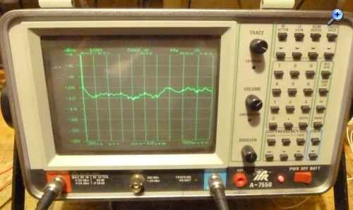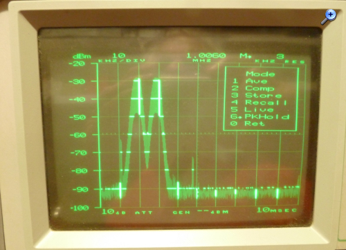 Hier noch ein paar Zahlen: Auflösungsbandbreite: 300Hz, 3kHz, 30kHz, 300kHz, 3MHz Videofilter: keines, 30kHz, 300Hz Darstellung: 'live', Mittelung, Peak-Hold, relativ zu gespeicherter Referenzmessung 10dB/Div, 2dB/Div oder lineare Skalierung Scan-Breite: 1kHz..100MHz/Div in 1/2/5-Schritten oder Zero-Scan Referenzpegel: -90..+30dBm Tracking-Generator-Pegel: -75..0dBm Referenz-Ausgang 100MHz, -30dBm