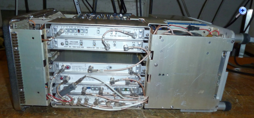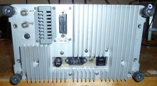 mir ist ein schöner Spektrum-Analyser der amerikanischen Firma IFR zugelaufen. Er misst von etwa 10kHz (offiziell 50kHz) bis 1GHz und hat auch einen Tracking-Generator sowie ein GPIB-Interface für die Fernsteuerung. Als weitere (leider nicht eingebaute) Optionen gibt es ein Quasi-Peak-Filter für EMV-Messungen, einen Demodulator/Messempfänger (FM schmal/breit, AM schmal/breit und SSB) sowie einen 12V-Bleiakku für Portabelbetrieb. Der maximal zulässige Eingangspegel ist mit 30dBm (1 Watt) recht hoch. Da er keinen Vorverstärker hat, ist der Rauschpegel eher hoch (-115dBm bei 300Hz Bandbreite). Gespeist wird er ab Netz (100..250V, 50..400Hz), internem Akku (optional) oder 12..30VDC. Der Verbrauch liegt bei etwa 50W, er hat einen Lüfter eingebaut.